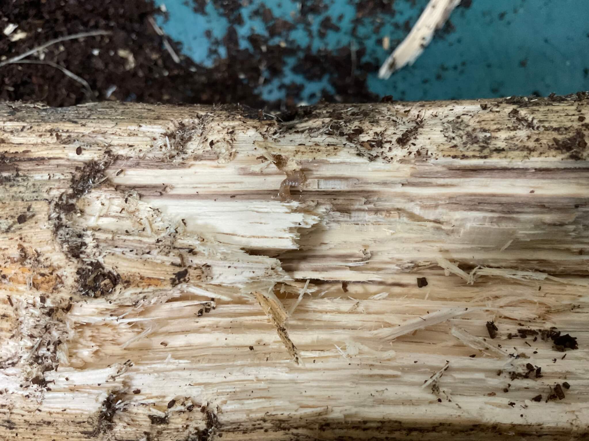 セットしてすぐに産卵痕が見えました。側面から1令幼虫が見えたので、割り出しました。