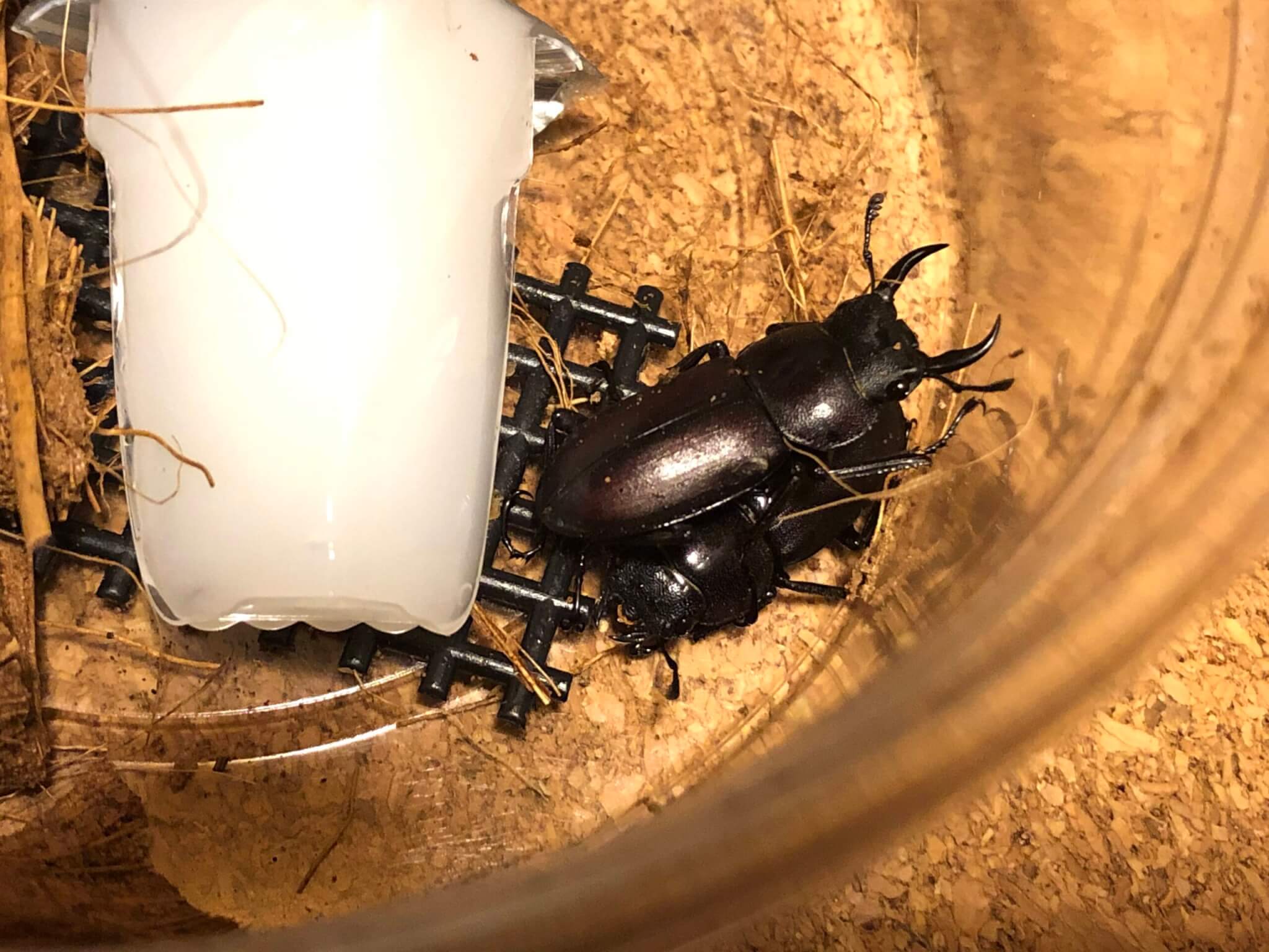 産卵Mat〜プロトタイプ〜が余ってしまったので、適当に固詰して庭に落ちてたコクワを拾って中に入れて飼育していたら、幼虫が見えたので割り出してみた。まさか産卵しているとは思ってもいなかった(コクワは材産卵が基本)ので、もし早く割り出していたらもっといたのかもしれない…?割り出しの時メスはもうお亡くなりでした。