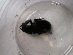 割り出し後、100円ショップの円筒型の900プラ容器に1頭ずつ投入し、途中5、6回えさ替え実施。小バエ発生したため、いつもより多くえさ替えしました。菌糸ビン作成時のブロックのカスを混ぜてやるとよく食べてくれ無駄なく消費してくれました。