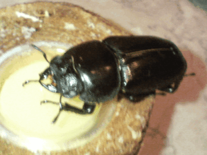 割り出し後:800ccボトルにきのこMatを詰めほったらかし飼育。11月上旬:黒くなってきたので交換、余っていたBasicを1100に詰め、菌が回った後投入。温室へ。3月下旬:温室の隅に置きっぱなしで、見たときには菌糸はもう真っ黒だった。死んでいるのかと思ったら57mmの成虫が出てきた。
