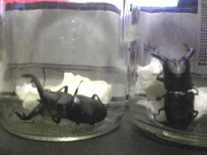 某ショップのオークションでスマヒ(アチェ産)として購入し、大事に育て羽化を心待ちにしていた。以前飼育したスマヒ(リアウ産)よりも幼虫の成長に伸びが無くこんなものかと思っていた。2008/3に試しに掘り出してみると顎の形状がスマヒと明らかに違。不審に思いその日の内に羽化したと思われる全てのボトルを掘り出すと何と出てきたのは全てダイオウヒラタであった。