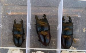 知人から2齢幼虫の状態で譲り受け1100mlボトルに投入、ワインセラーで管理した。幼虫期間は丸1年ほど、ボトル交換は容量は変えず2回。蛹化直前に暴れたためマットに変更した。