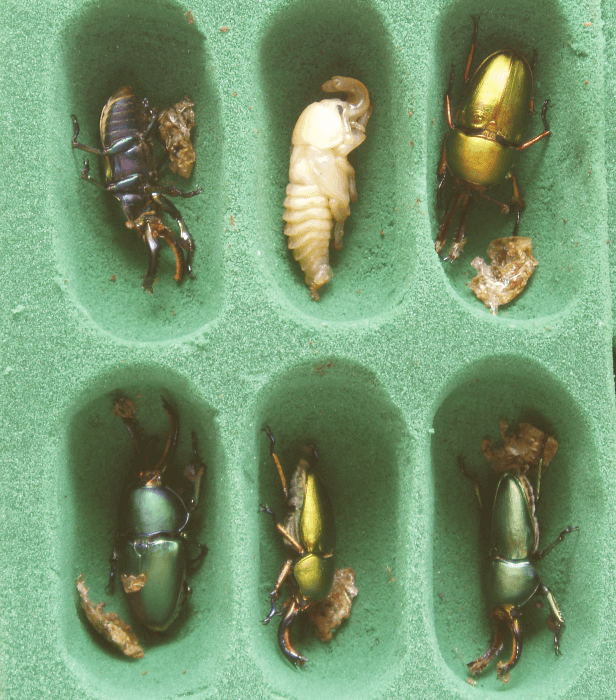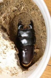 | 飼育期間・状態 | 2018年12月に割り出した幼虫を430mlのきのこマット入りプリンカップに投入し、あとは放置しました。 ♀は3ヵ月くらいで蛹室を作りだし、♂はその1か月後に蛹室を作成。 |