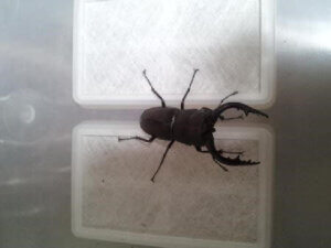 | 飼育期間・状態 | 250ccカップにて2令幼虫まで育て、雄と判断しクワマットを固詰めした1400ccへ投入。 羽化まで餌交換なし。 幼虫期間は10ヶ月 |