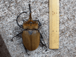フローレスギラファが羽化しました。♂101㎜です。羽化までの詳細内容は以下のとおりです。<羽化までの内容>使用したエサ:E-1100ボトル1本設定温度:23~25℃前後。エサ交換回数:交換途中1回:E-1100ボトル本使用羽化までの期間:約8ヶ月今回はフローレスギラファ菌糸ビン1100ccでの1本羽化に挑戦してみました。結果は101mmと見事希望の100mmupが出たので、満足しております。勿論フローレスギラファとしてはまだまだ小さいサイズですがこの容量の菌糸ビン1本、この形状の菌糸ビン1本で100mmオーバーが出た事に意義があると思います。まだ他にも個体いますので更なるサイズアップを期待しています。