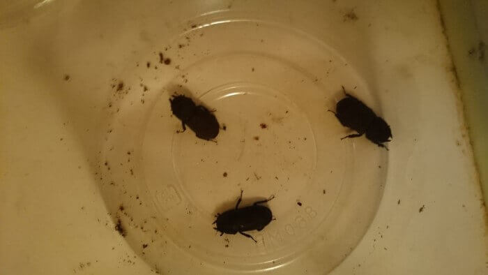 幼虫割り出し後、きのこマット内で「冷やし虫家」を使用して25℃一定温度管理(6月11日まで)、6月12日~は新エアコン設置の飼育専用部屋に移転し同じく25℃一定温度管理。7月9日に羽化確認を行い、ペア(1)からは♂14頭♀3頭、ペア(2)からは♂5頭♀6頭を得ていた。その時点で未だ幼虫・蛹だった個体をそのまま継続管理して、今回羽化を確認した。 今回は、ペア(1)からは♂8頭♀7頭、ペア(2)からは♂1頭♀2頭を得た。