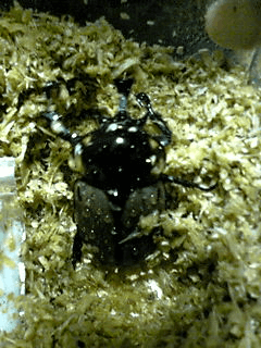 | 飼育期間・状態 | オークションで幼虫3令ペアF2を2010年9月頃購入。7月羽化の幼虫が11月後半には蛹になり2010年12月、2011年1月とわずか半年ほどで成虫になりました。 餌の交換は1回です。 |