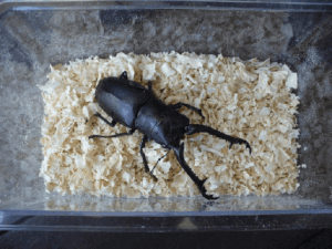 初令は「きのこMat」で育て、その後「Basicクヌギ」を800ccボトルに詰めて育てました。割り出しが遅かったのと常温飼育のため幼虫飼育期間2年となりました。