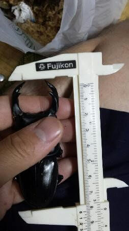 | 飼育期間・状態 | 孵化後、菌糸プリカで管理 2014年6月19日菌糸ボトル1400(11g) 10月2日菌糸ボトル1400(31g) 12月19日菌糸ボトル1400(32g) 2015年6月3日掘り出し(成虫) |