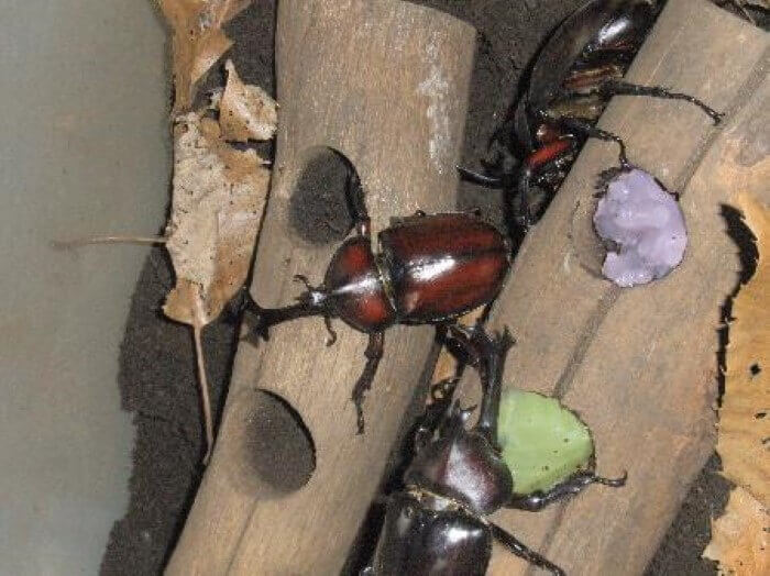 毎年の夏に神社で捕ってくるカブトムシを交尾させて産卵(7月末)→卵をきのこマットに分けて11月まで放置。時々、水やり。巨大な3齢幼虫になり冬は腐葉土で放置。5月に黒土と腐葉土でサナギ→成虫。