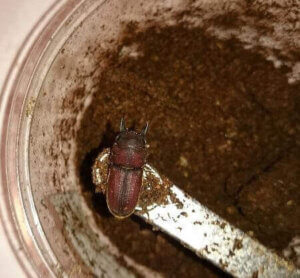 <strong><span style="color: #e38e6d;">↑ 使用済の Basicシリーズ(菌糸ビン・菌床ブロック)を 廃菌床にした物をエサで使用</span></strong>前年同様廃Basic処理班で今回も飼育 但し今回は廃Basicのみのグループと 廃Basicと新品きのこMatのブレンドグループ 更に雄8頭を温度管理したグループの3グループに分けて飼育 今回の写真は温度管理グループのカブトです。他の6頭も羽化しているようで後は自分でマットから出て来るのを待つのみです。
