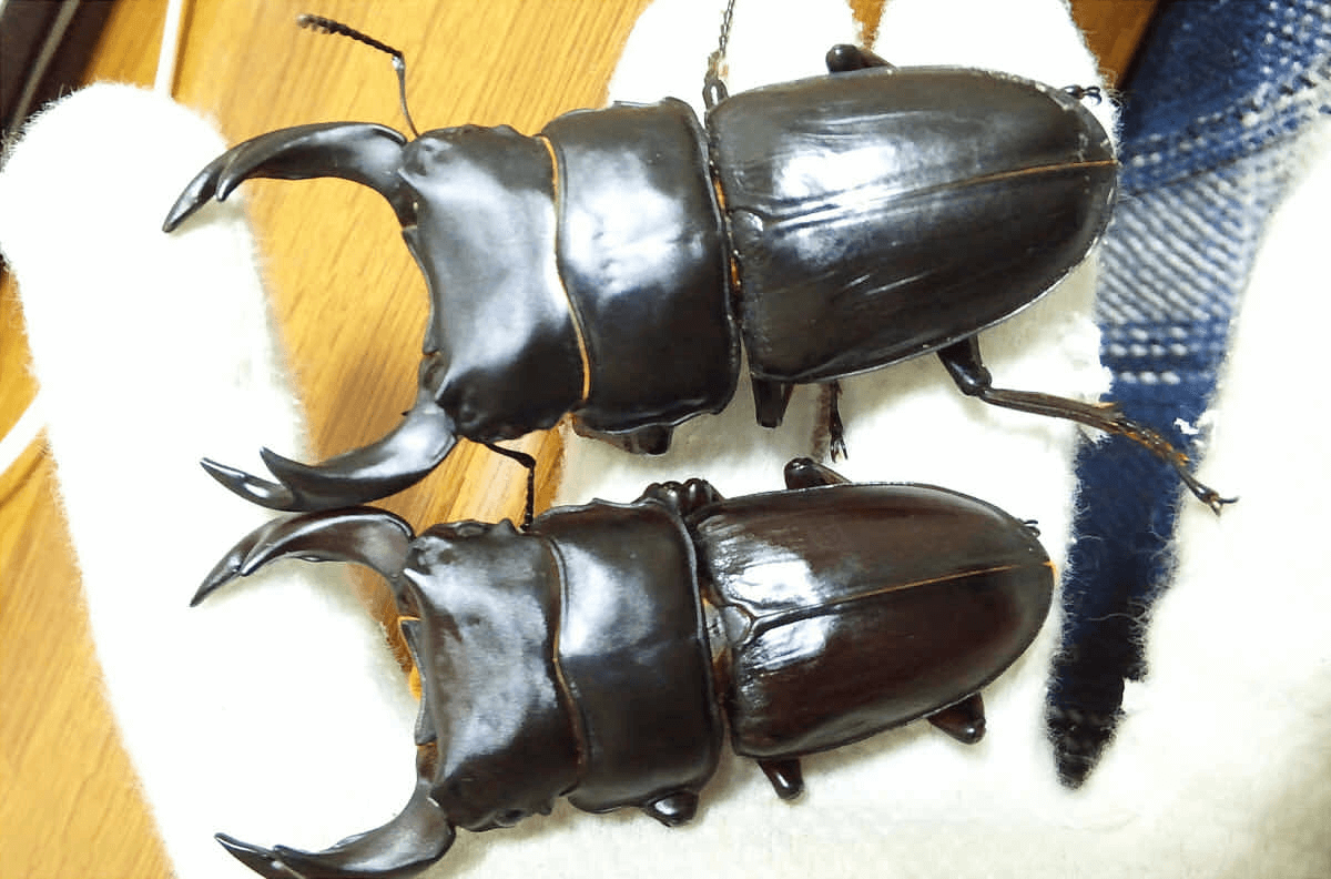 つい最近紹介した個体は体重22g(暴れ無)で体長が70mm達していなくて(画像2の下の個体)、ここで紹介した個体は20gで73mmupしてくれました(顎先のかけが無ければもう少し)2体並べると明らかに大きさが違ったのでびっくりです。幼虫の還元率の違いなのでしょうかね・・・