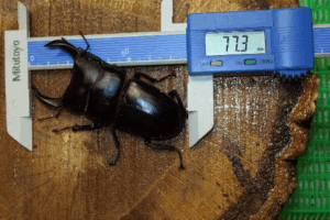 エサはBasicを使用。菌糸200ccプリンカップで羽化させました。餌交換は2回。設定温度は22~24℃位。幼虫からの羽化までの期間は約11ヶ月でした。