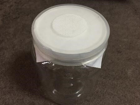 過去の飼育では一般的なマットの加湿で投入し、時々差し水した程度。今回はノコ飼育ではマットの加水はベトベトにし、800ccボトルに詰め幼虫投入後フィルター付きの蓋に加えタイペスト紙を挟んで乾燥を防止しました。