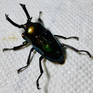| 飼育期間・状態 | 5月上旬 孵化直後からE-800(既製品)に投入 8月26g(以降ヒラタケ使用) 11月36g 2月37g 7月羽化 |