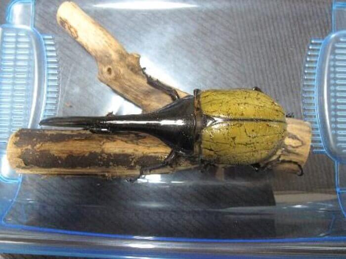 ・3令初期までは衣装ケース大で多頭飼育 ・3令後期には、クリーンケースLにてオスメスペア飼育 ・3令後期のMATは、完熟MATときのこMATを2:1の割合でブレンドした物を使用 ・クリーンケースLにて羽化 約1年4ヶ月の期間を経て無時羽化してくれました。 当方の目標としていた150mmUPの大型個体で大満足な結果です。ペア飼育のおかげか定かではありませんがメスも同時期に羽化しておりこちらも70mmUPと大型です。完熟MATときのこMATのポテンシャルを実感しました。